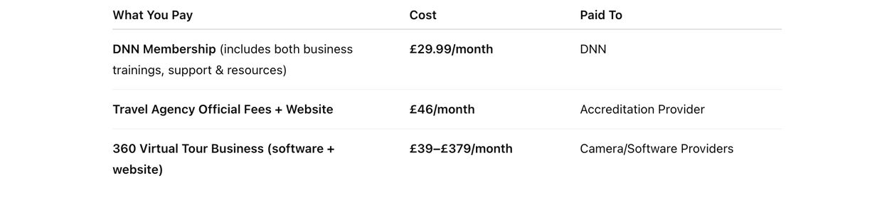 Under £200/month (DNN Membership + Travel Agency + 360° Basic)